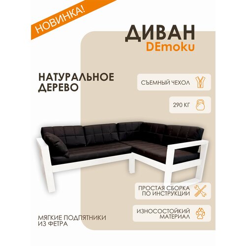 Диван угловой правый DEmoku Д-4, Оксфорд шоколад, каркас дерево белый, съемные чехлы: сравнение цен, характеристики, фото, актуальное наличие и цены.