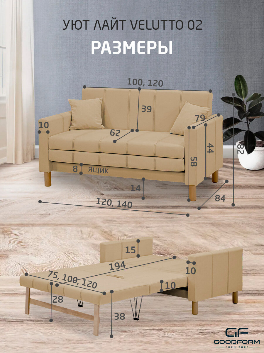 Диван Уют Лайт Velutto 02 NEW 120x84x82 см, бежевый Велютто, выкатной GOODFORM: сравнение цен, характеристики, фото, актуальное наличие и цены.