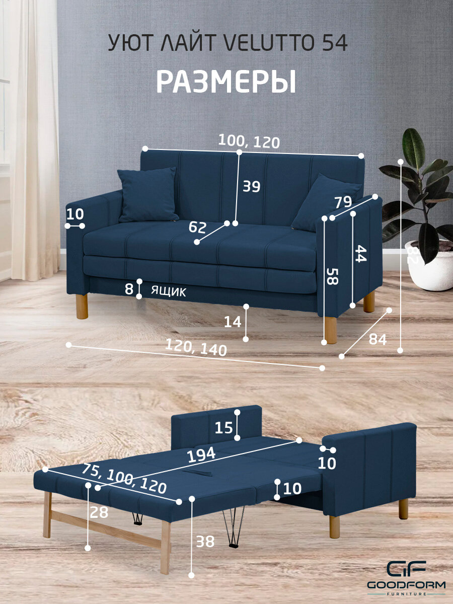 Диван Уют Лайт Velutto 54 NEW 140x84x82 см, синий Велютто, выкатной GOODFORM: сравнение цен, характеристики, фото, актуальное наличие и цены.