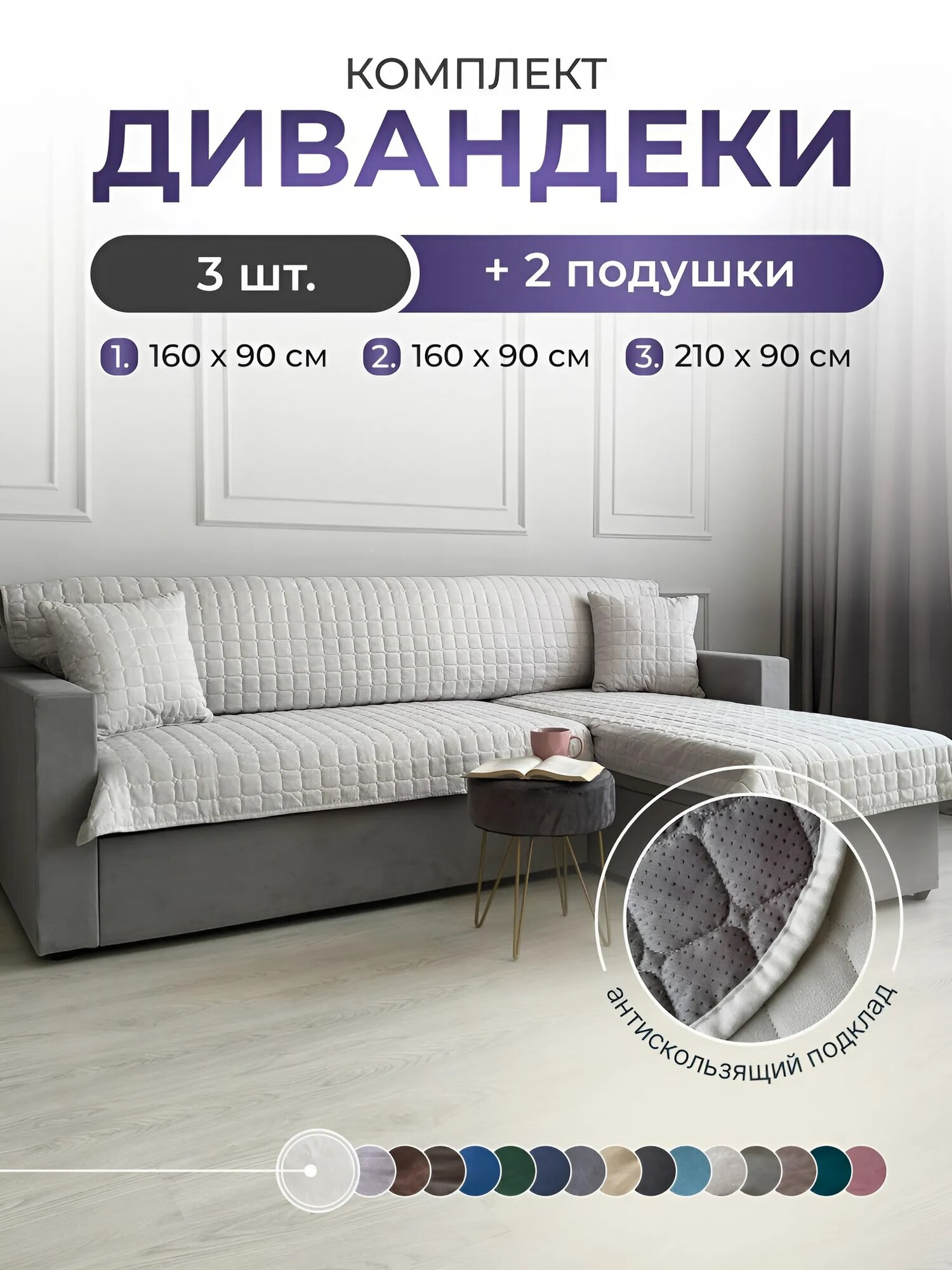 Бренд IRISHOME представляет вам набор дивандеков: один на диван 210х90 см и два на кресло 160х90 см. На собственном производстве мы создаём изделия для мебели из натуральных материалов. Ткань - бархатистый канвас, имеет свойство быстро высыхать и защищать текстиль от повреждений и загрязнений, что упрощает использование и поэтому ей так приятно пользоваться. Также преимущество такого чехла на угловой диван в том, что он имеет антискользящий подклад, благодаря которому вы не будете скатываться вниз. Вы ощутите уверенность и почувствуете себя комфортно в своём любимом месте. Накидка подойдёт в гостиную как на спинку мебели, коврик под ноги или на сидение. Вы можете брать комплект с собой в дорогу на автомобиле, чтобы защитить сидения от загрязнений. Такой набор универсальный, ведь он подойдет под любую ситуацию - даже если вы захотите взять его на дачу на тахту, шезлонг или приобрести в подарок.