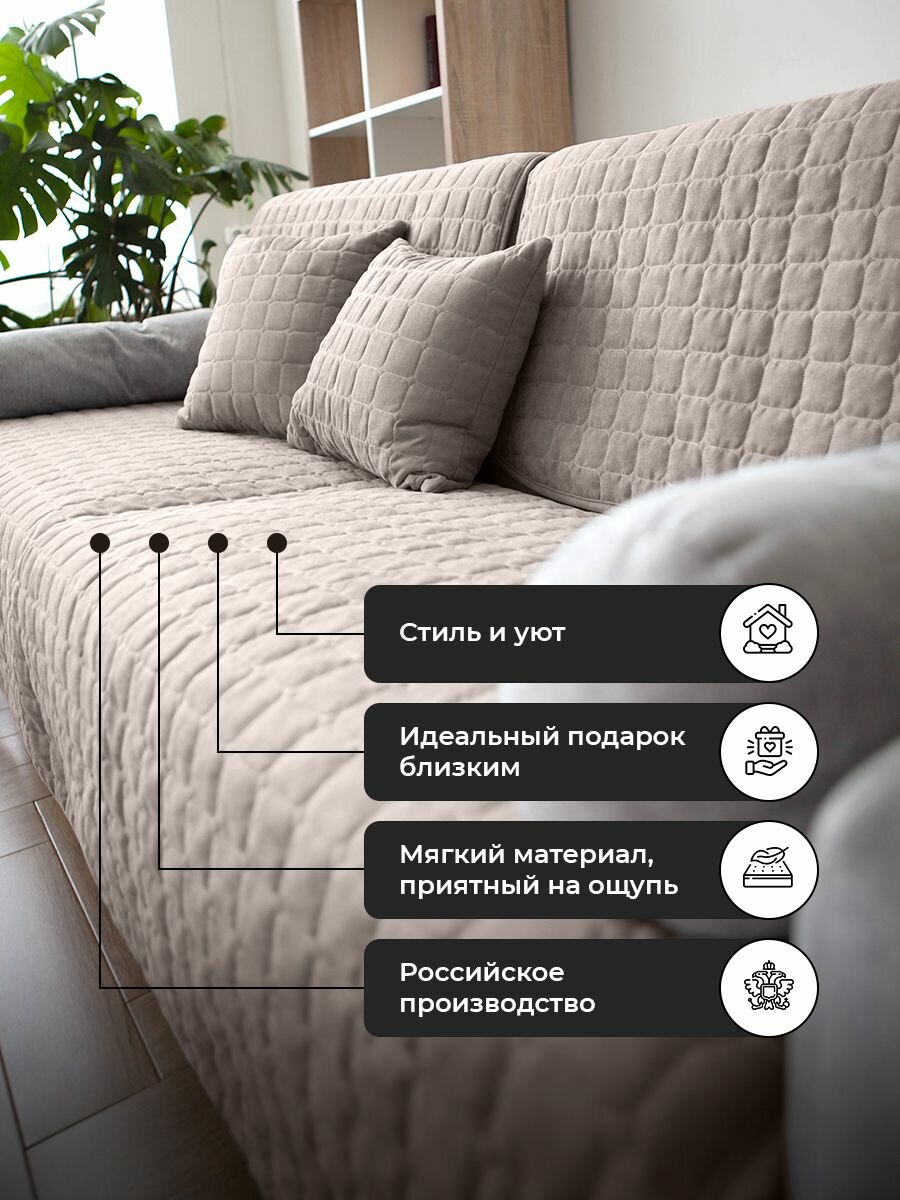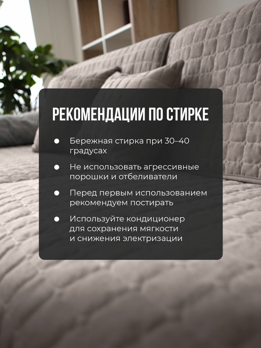 Бренд IRISHOME представляет вам набор дивандеков: один на диван 210х90 см и два на кресло 160х90 см. На собственном производстве мы создаём изделия для мебели из натуральных материалов. Ткань - бархатистый канвас, имеет свойство быстро высыхать и защищать текстиль от повреждений и загрязнений, что упрощает использование и поэтому ей так приятно пользоваться. Также преимущество такого чехла на угловой диван в том, что он имеет антискользящий подклад, благодаря которому вы не будете скатываться вниз. Вы ощутите уверенность и почувствуете себя комфортно в своём любимом месте. Накидка подойдёт в гостиную как на спинку мебели, коврик под ноги или на сидение. Вы можете брать комплект с собой в дорогу на автомобиле, чтобы защитить сидения от загрязнений. Такой набор универсальный, ведь он подойдет под любую ситуацию - даже если вы захотите взять его на дачу на тахту, шезлонг или приобрести в подарок.