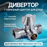 Дивертор Innopax Water's, Т-образный, серебристый, латунь, 1 шт