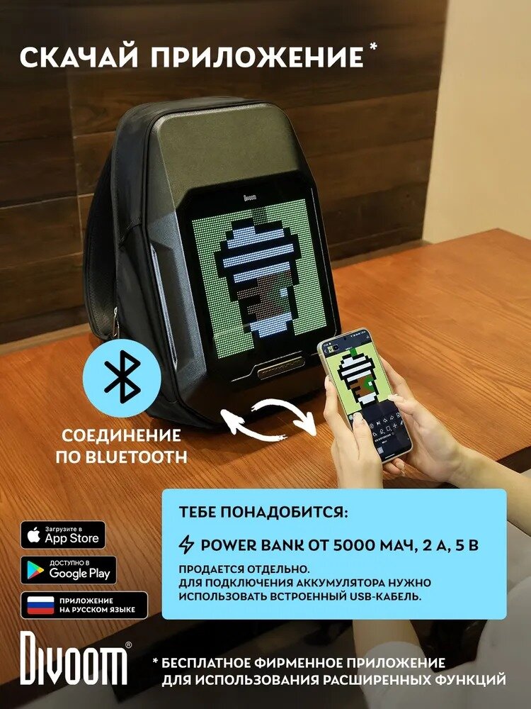 Divoom Cyberbag 15-дюймовый Водонепроницаемый Рюкзак Для Ноутбука Со Светодиодным Дисплеем 64×64 Пикселей: сравнение цен, характеристики, фото, актуальное наличие и цены.