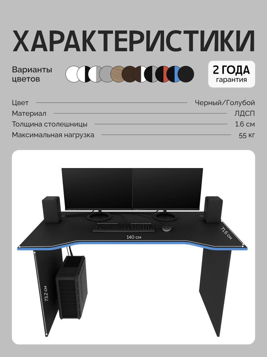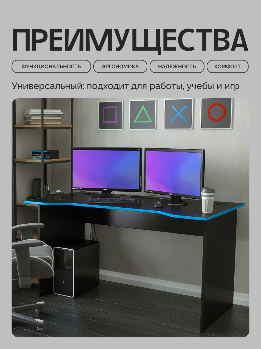 Геймерский стол – это идеальный выбор для тех, кто не только работает, но и проводит время за компьютерными играми. Наши геймерские столы обладают оптимальными размерами и способны выдерживать нагрузку до 55 кг на столешницу. Кроме того, они оснащены эргономичной столешницей, которая обеспечивает максимальный комфорт при использовании ноутбука или компьютера;