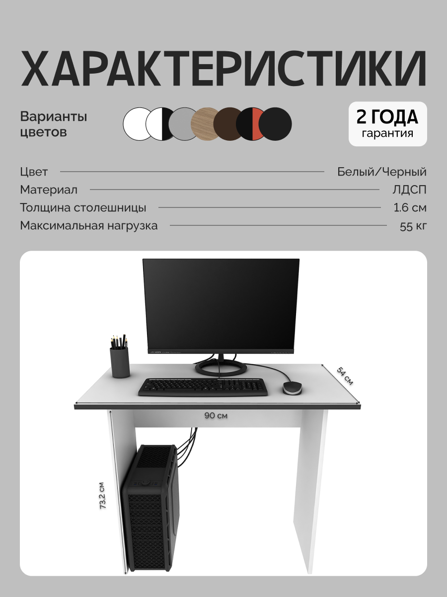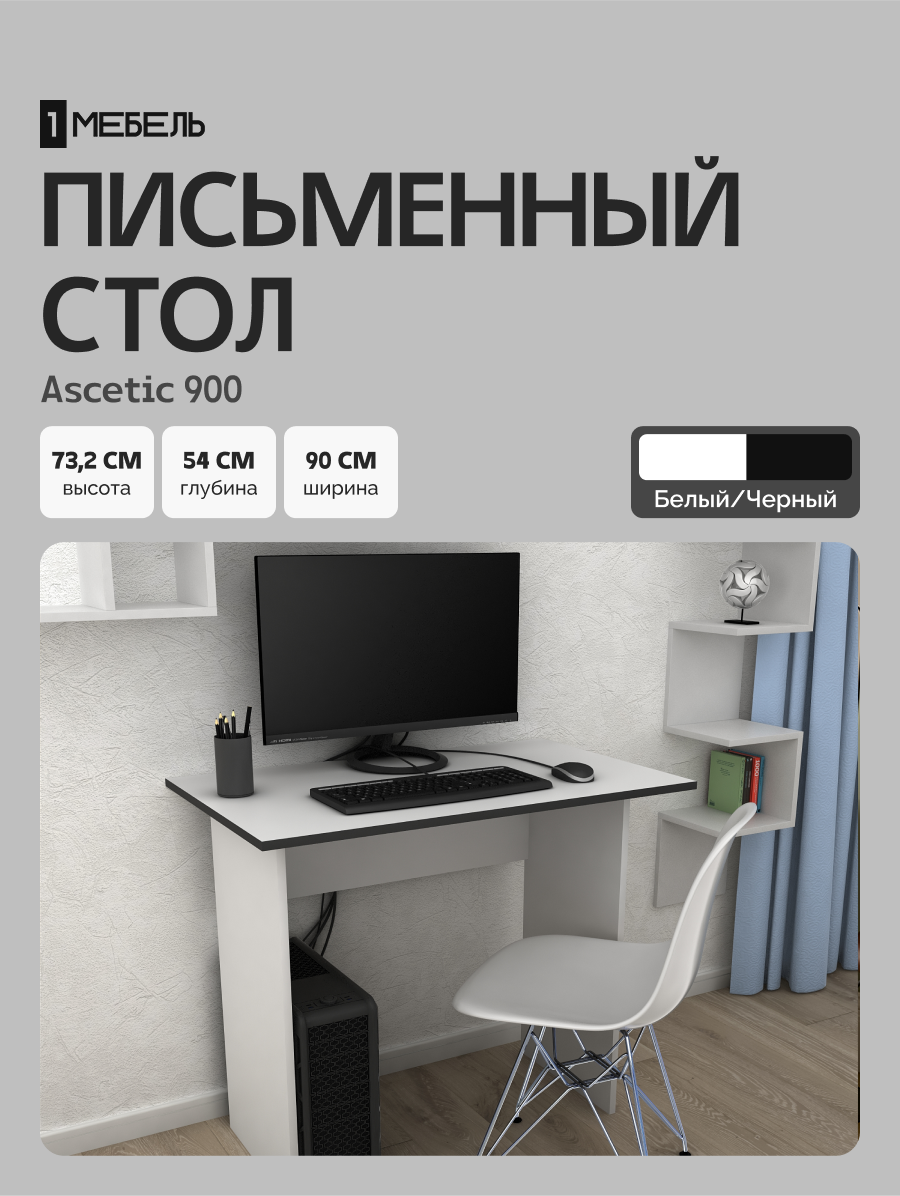 Стол письменный для школьника, компьютерный Ascetic 900 Белый/Черный, 90*54 см.: сравнение цен, характеристики, фото, актуальное наличие и цены.