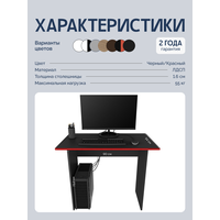 Купить Стол письменный для школьника, компьютерный Ascetic 900, 90х54х73.2 см, черный/красный с доставкой по всей России.