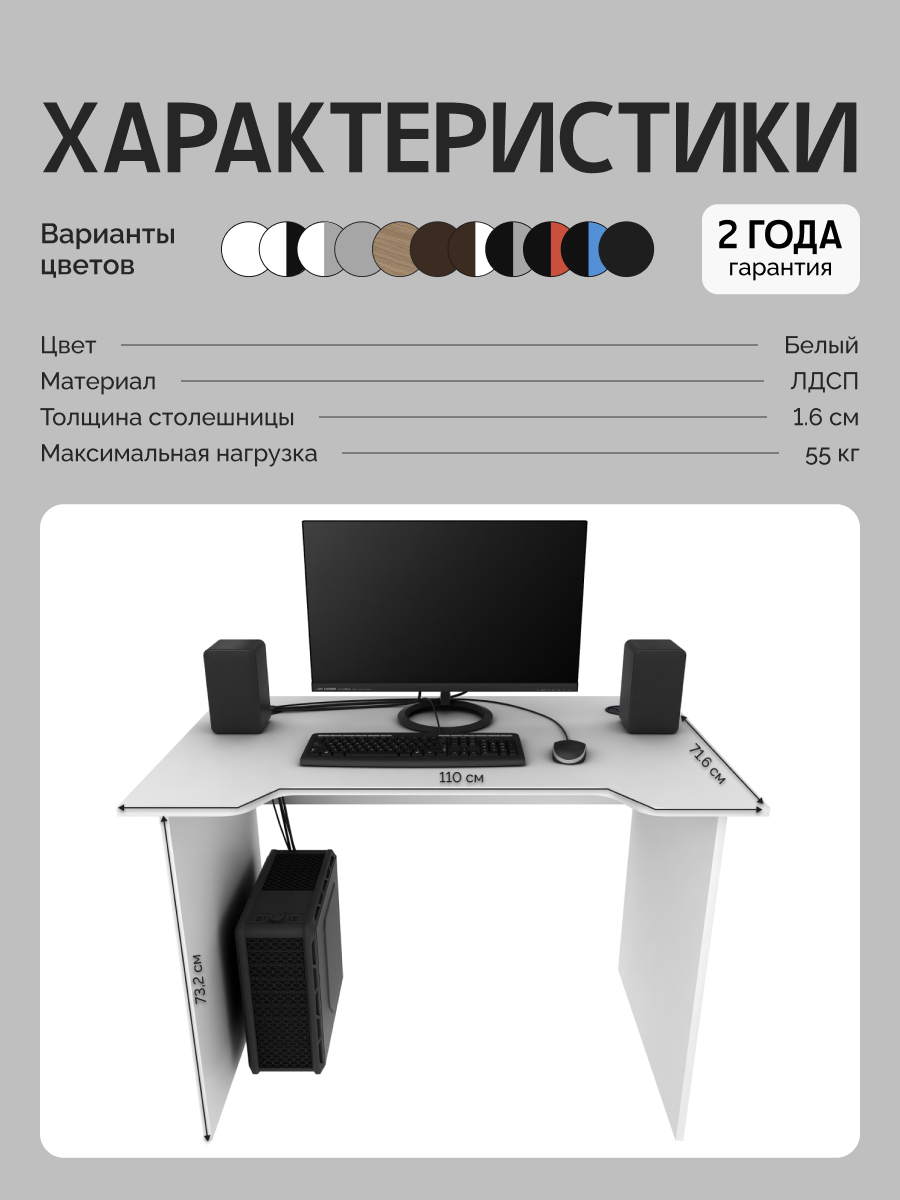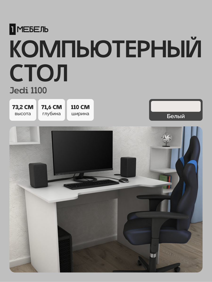 Стол компьютерный, письменный, игровой Jedi 1100 Белый, 110*71,6 см.: сравнение цен, характеристики, фото, актуальное наличие и цены.