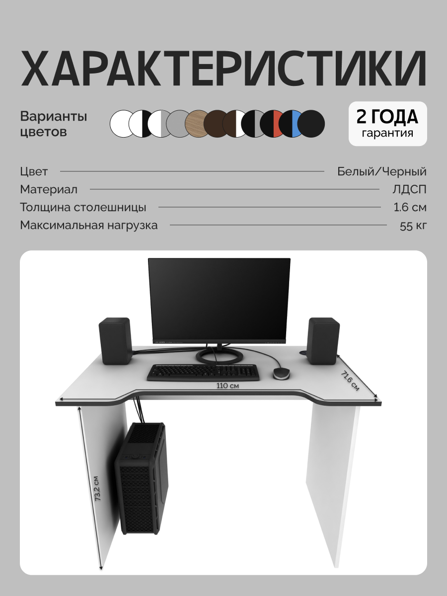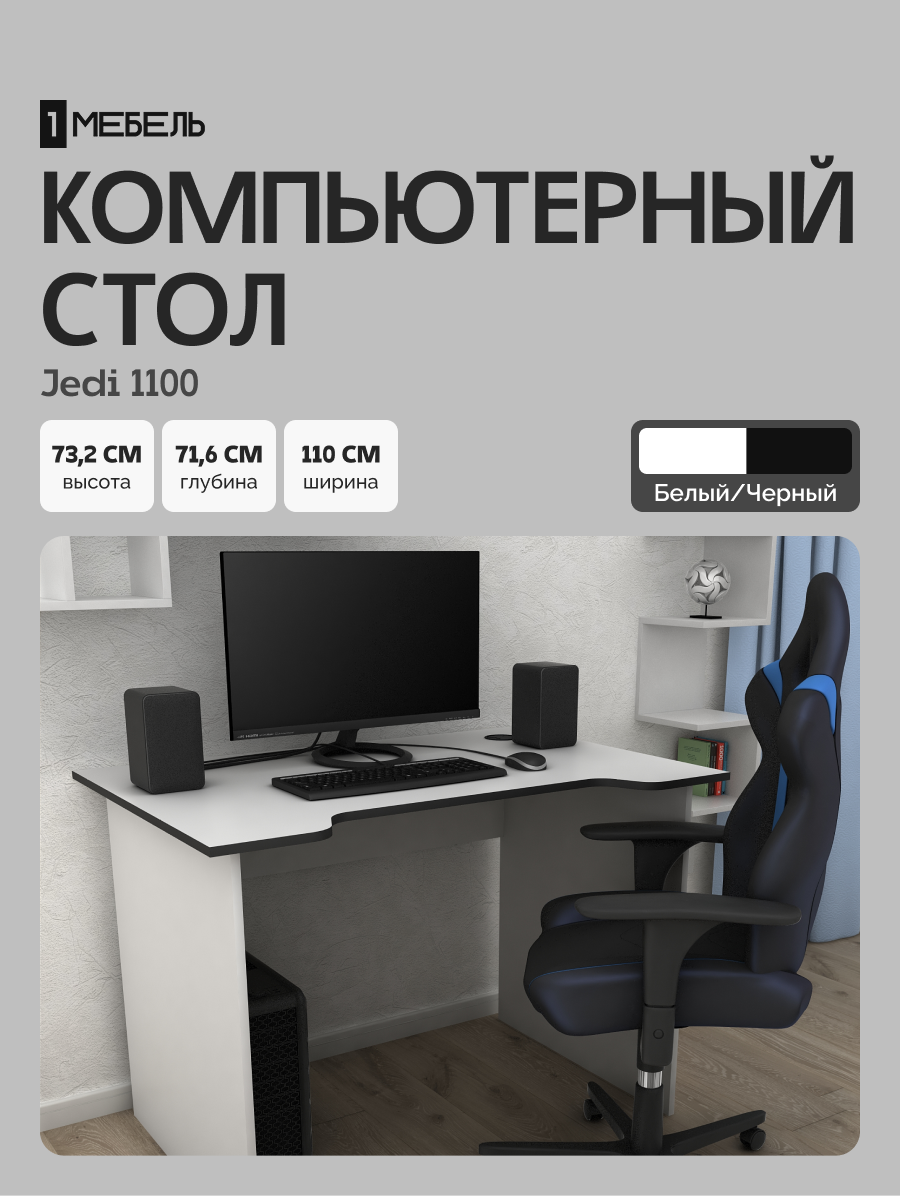 Стол письменный, компьютерный, игровой Jedi 1100 Белый/Черный, 110*71,6 см.: сравнение цен, характеристики, фото, актуальное наличие и цены.