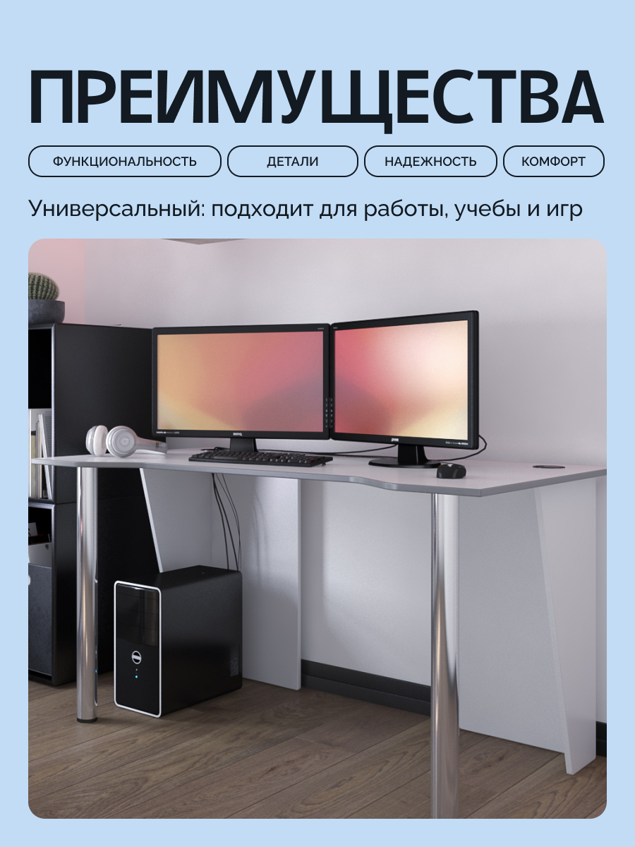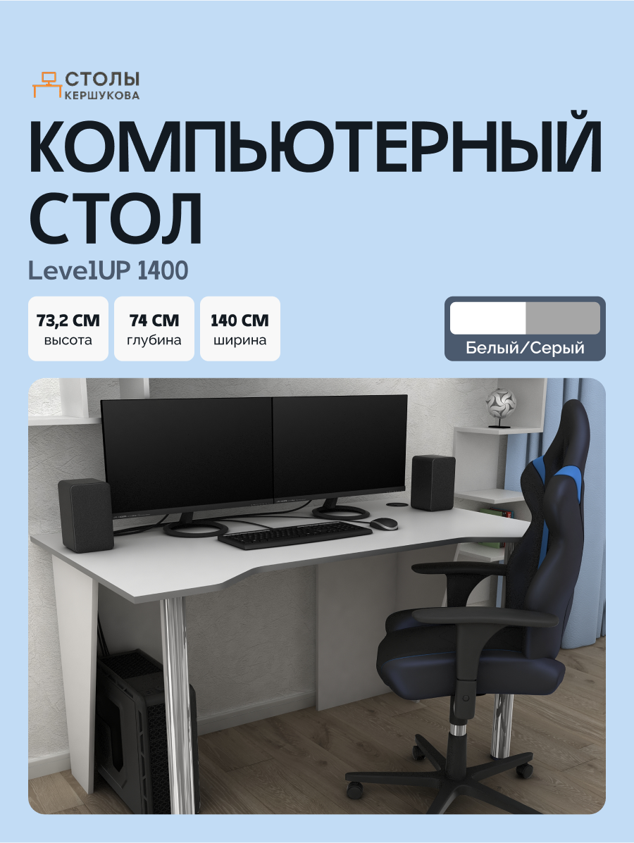 Стол компьютерный, письменный, игровой LevelUP 1400 Белый/Серый, 140*74 см.: сравнение цен, характеристики, фото, актуальное наличие и цены.