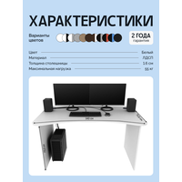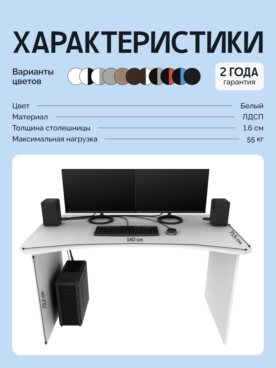 Геймерский компьютерный стол, письменный стол SURF 1400 Белый, 140*71,6 см.: сравнение цен, характеристики, фото, актуальное наличие и цены.