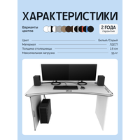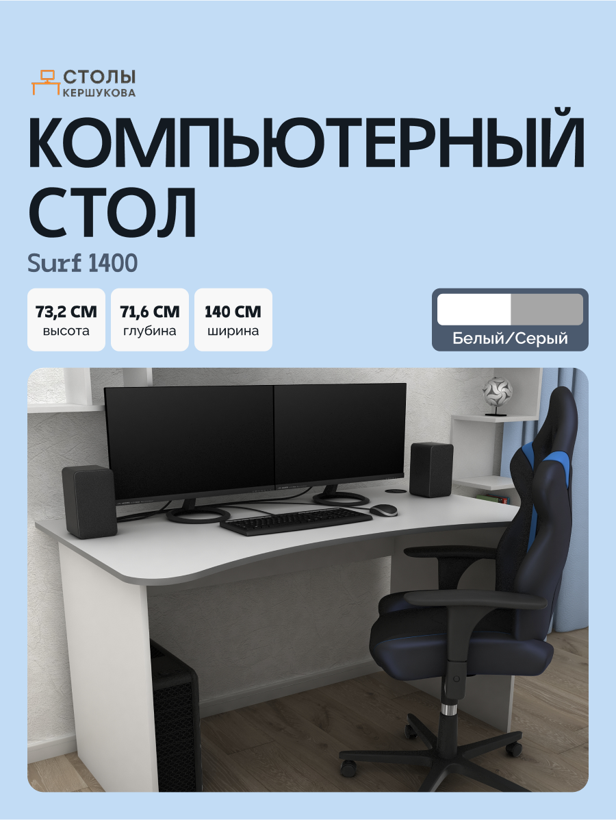 Геймерский компьютерный стол, письменный стол SURF 1400 Белый/Серый, 140*71,6 см.: сравнение цен, характеристики, фото, актуальное наличие и цены.