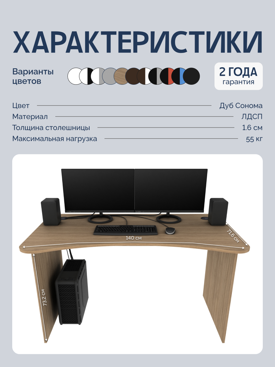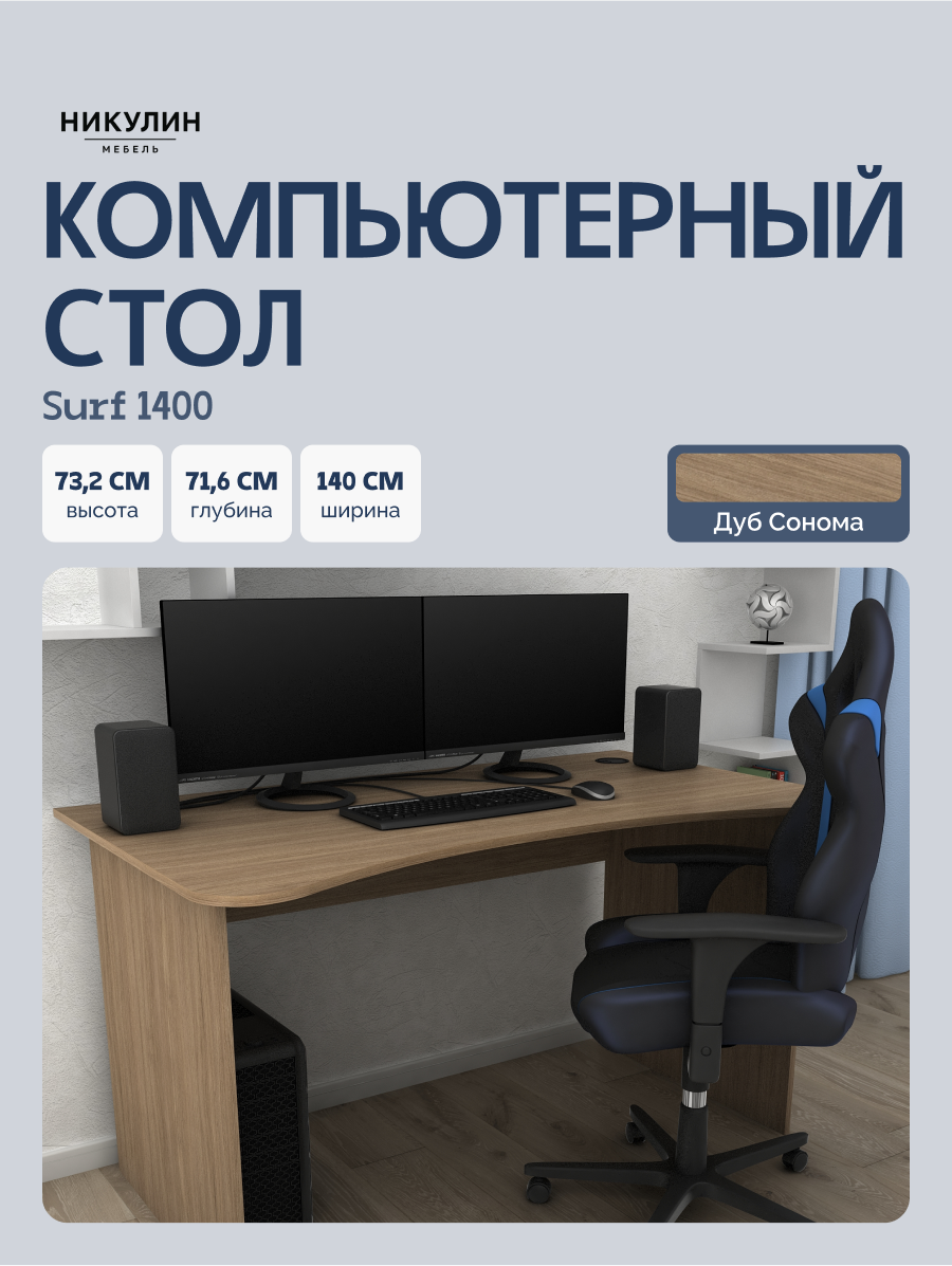Геймерский компьютерный стол, письменный стол SURF 1400 Дуб Сонома, 140*71,6 см.: сравнение цен, характеристики, фото, актуальное наличие и цены.