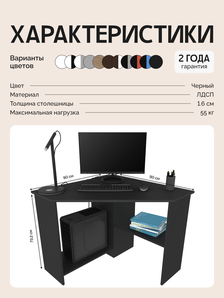 Стол письменный для школьника, компьютерный, угловой с полками Corner 900 Черный, 90*90 см.: сравнение цен, характеристики, фото, актуальное наличие и цены.