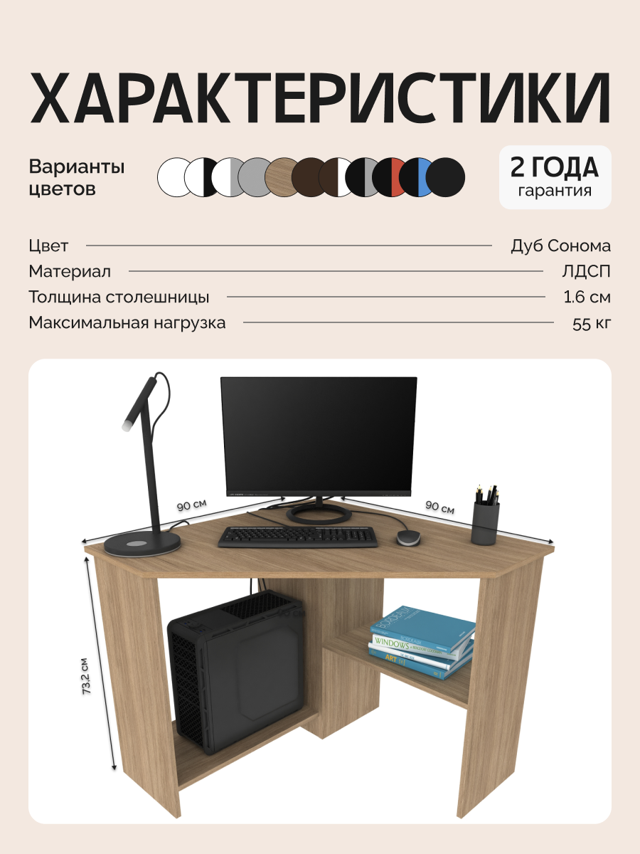 Стол письменный для школьника, компьютерный, угловой с полками Corner 900 Дуб Сонома, 90*90 см.: сравнение цен, характеристики, фото, актуальное наличие и цены.
