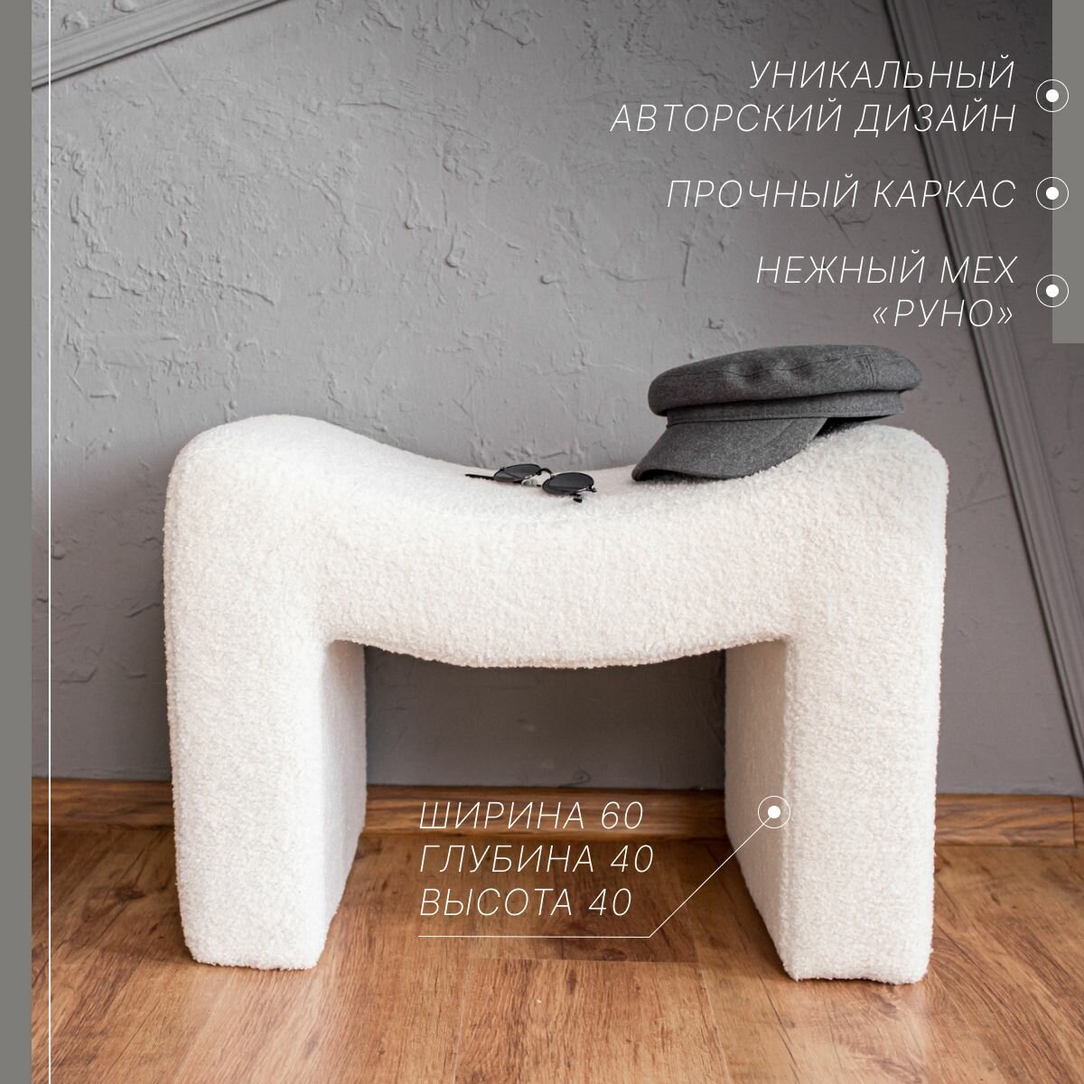 Банкетка выполнена в минималистичном и оригинальном дизайне бесконечных линий и обшита тканью «Руно » (искусственный мeх высокого качества).