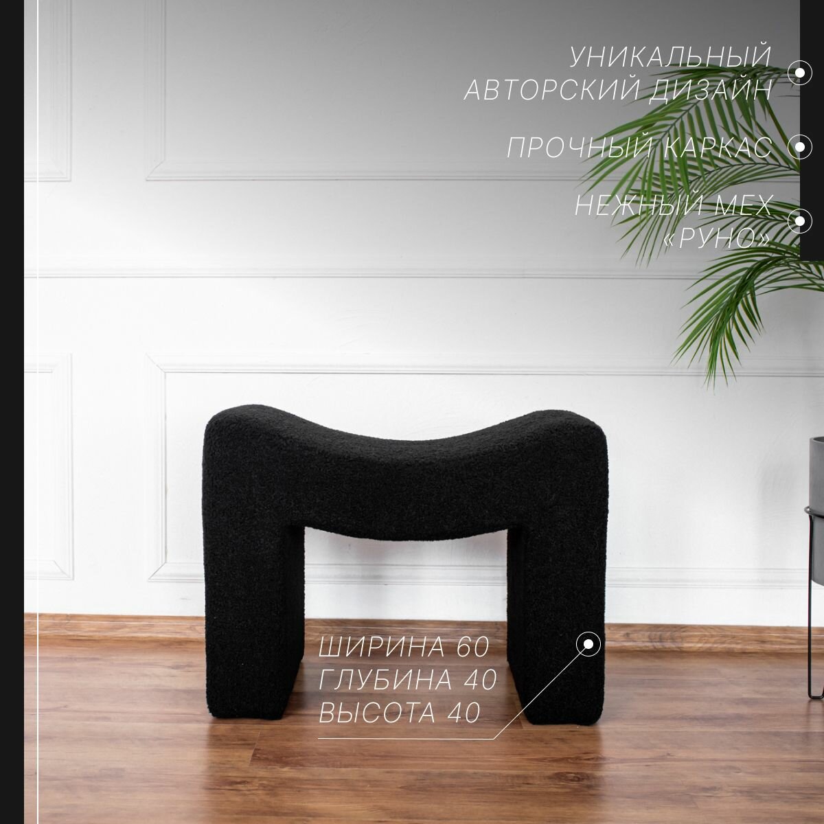 Банкетка выполнена в минималистичном и оригинальном дизайне бесконечных линий и обшита тканью «Руно » (искусственный мeх высокого качества).
