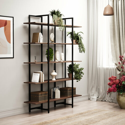 Купить Дизайнерский Металлический Стеллаж ЛОФТ LIBRON 5 полок (175х134х34) Американский орех с доставкой по всей России.