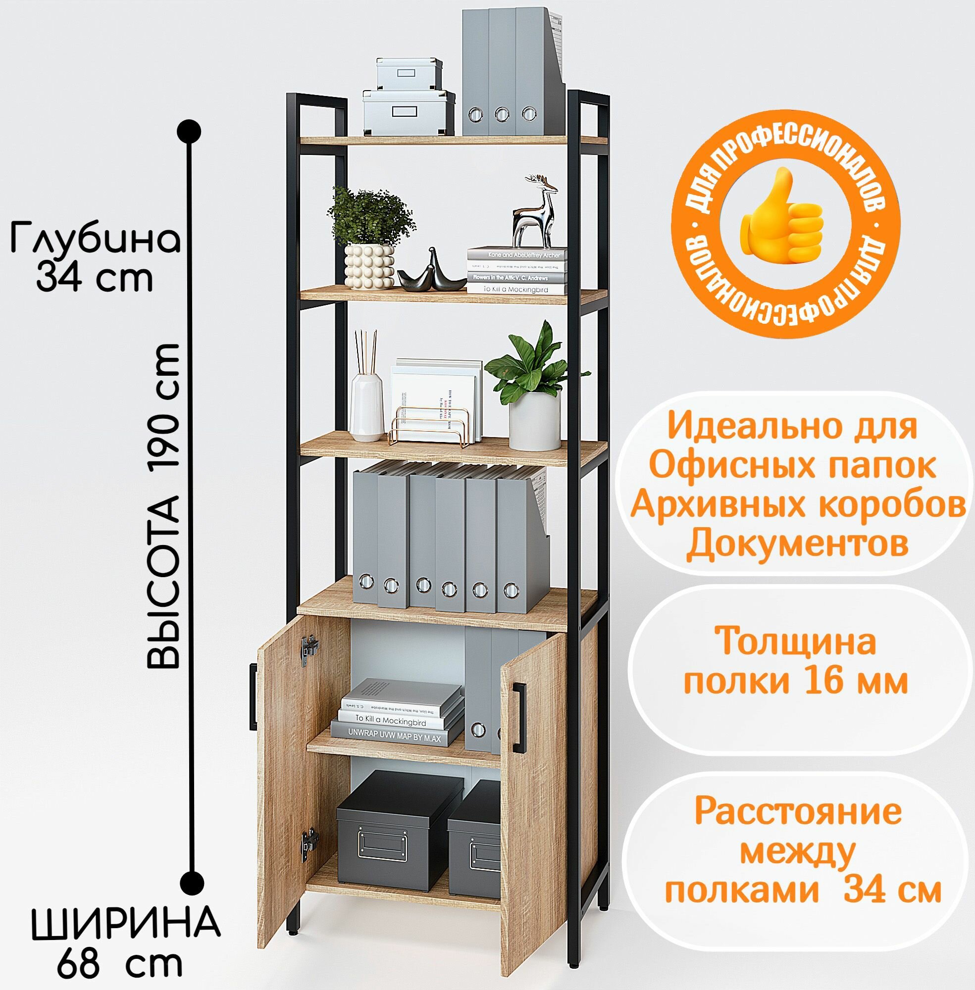 Дизайнерский Офисный Стеллаж лофт BRUNO Office с дверцами и полками (190х68х34см) Дуб Сонома: сравнение цен, характеристики, фото, актуальное наличие и цены.