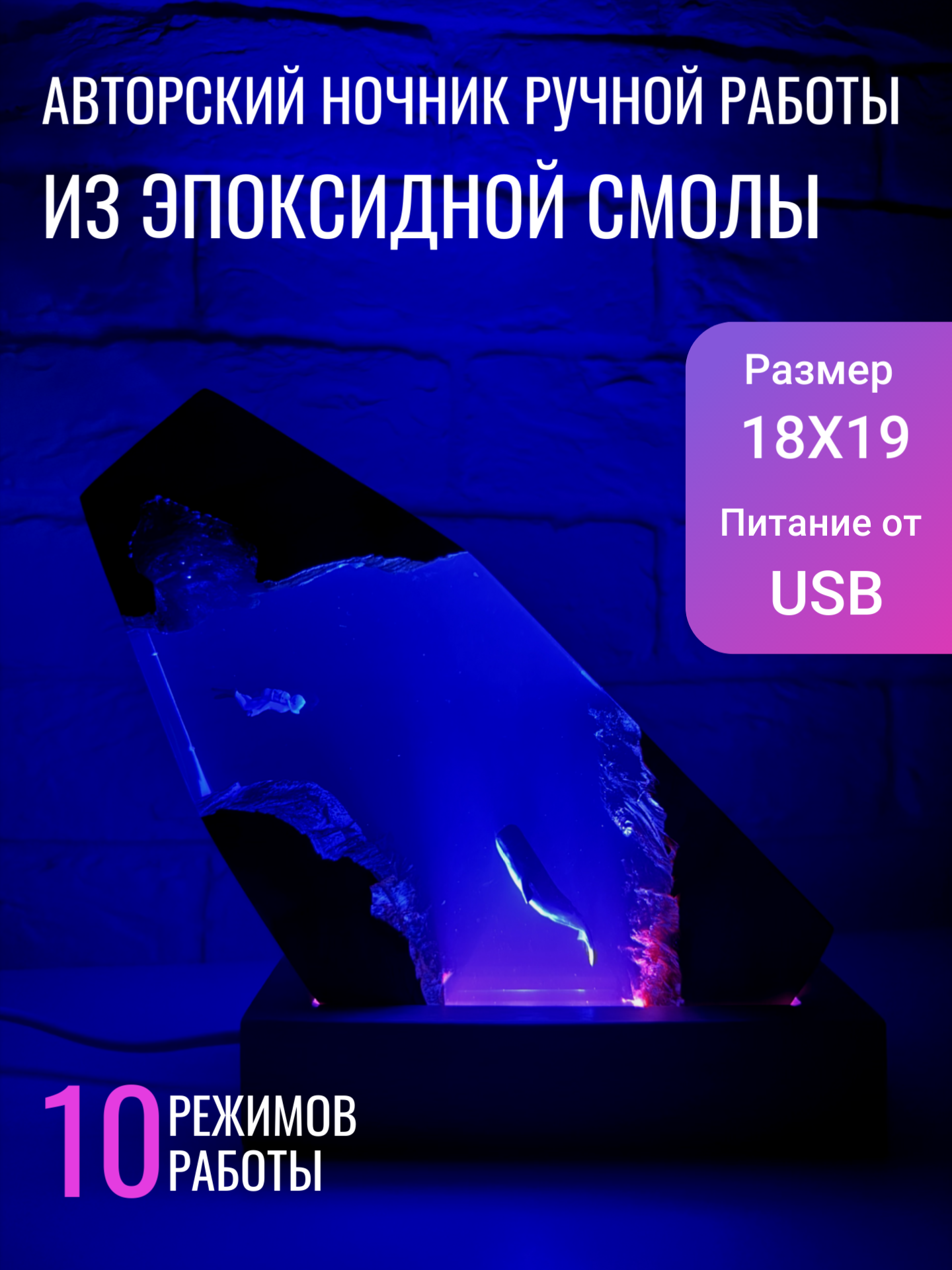 Дизайнерский светильник - ночник из эпоксидной смолы и натурального дерева - это прекрасное решение для создания уюта в вашем доме. Этот прикольный красивый ночник светильник станет отличным оригинальным подарком для мамы, бабушки, папы, сестры, брата, парня, девушки, коллеге, мужчине, женщине, подруге, другу, дочери, сыну, для нее, для него, рыбака, рыбаку, жене, мужу, на день рождения, на день рождение, на др, на праздник, для дома, на новоселье, на свадьбу. Этот прикроватный светильник из эпоксидной смолы не имеет запаха и абсолютно безопасен. Светодиодный ночник для сна питается от USB-порта и переходника в розетку.