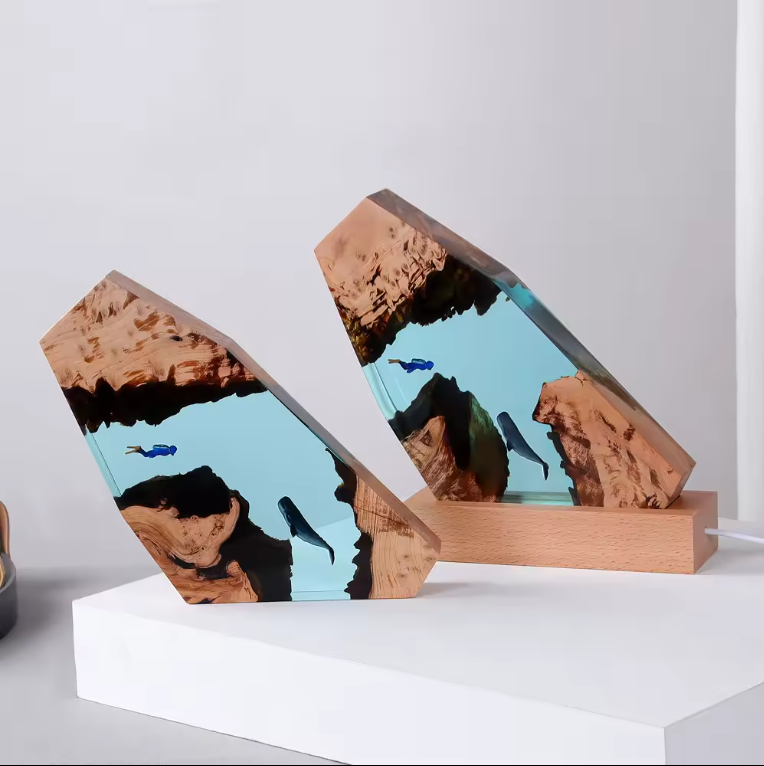 Изделия из эпоксидной смолы всегда привлекут внимание ваших гостей. Если вам нравятся часы из эпоксидной смолы, стол из эпоксидной смолы, поднос из эпоксидной смолы, то наша настольная лампа ручной работы точно придется вам по вкусу. Необычный стильный настольный светильник создаст в вашем доме атмосферу уюта и спококойствия. Наши эпоксидные изделия, так же как и эпоксидные ночники выполнены в непревзойденном качестве и станет настоящим украшением.