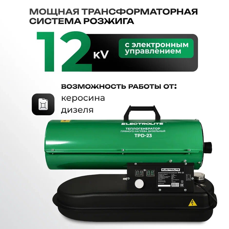 Дизельная пушка прямого нагрева Electrolite TPD-23 ( Дизель/Керосин, 23кВт, ): сравнение цен, характеристики, фото, актуальное наличие и цены.