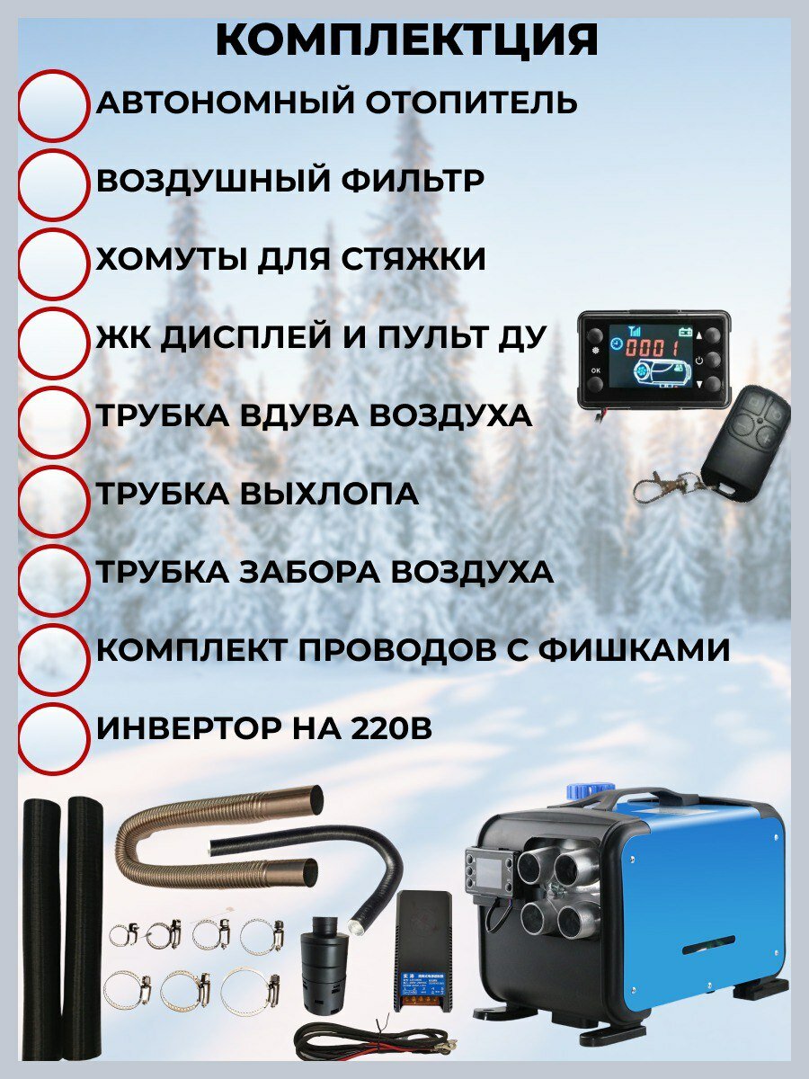 Дизельный автономный воздушный отопитель, алюминиевые сопла,12-24-220в, 5Кв: сравнение цен, характеристики, фото, актуальное наличие и цены.