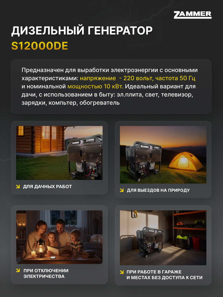 Купить Дизельный генератор Zammer S12000DE S12000DE с доставкой по всей России. Дизельный генератор Zammer S12000DE S12000DE: сравнение цен, характеристики, фото, актуальное наличие и цены.