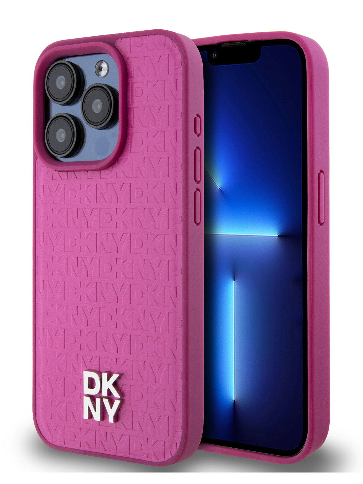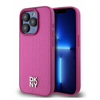 Купить DKNY для iPhone 15 Pro Max чехол PU Repeat Stack metal logo Hard Pink (MagSafe) с доставкой по всей России.