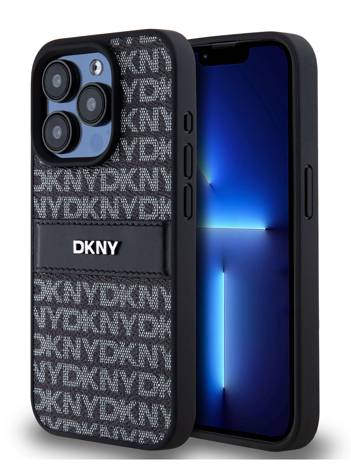 Купить DKNY для iPhone 15 Pro Max чехол PU Repeat texture Tonal stripe Metal logo Hard Black с доставкой по всей России.