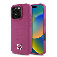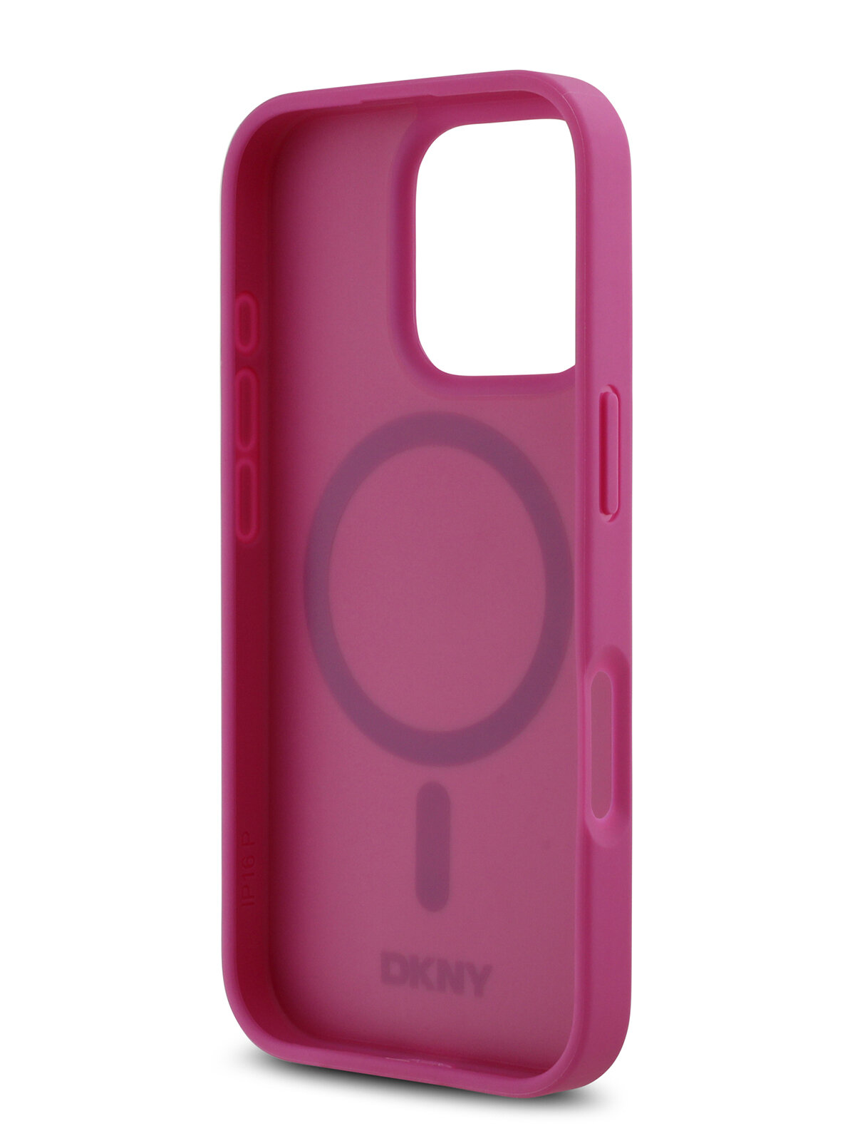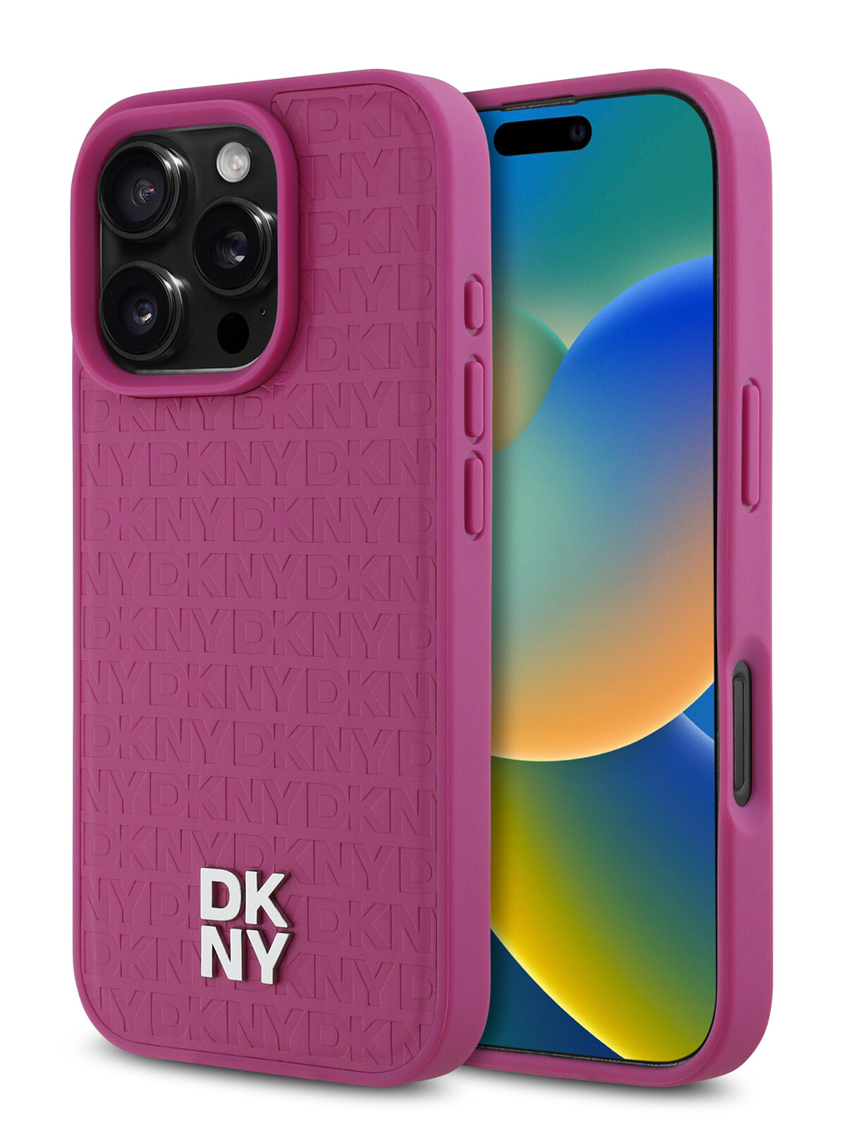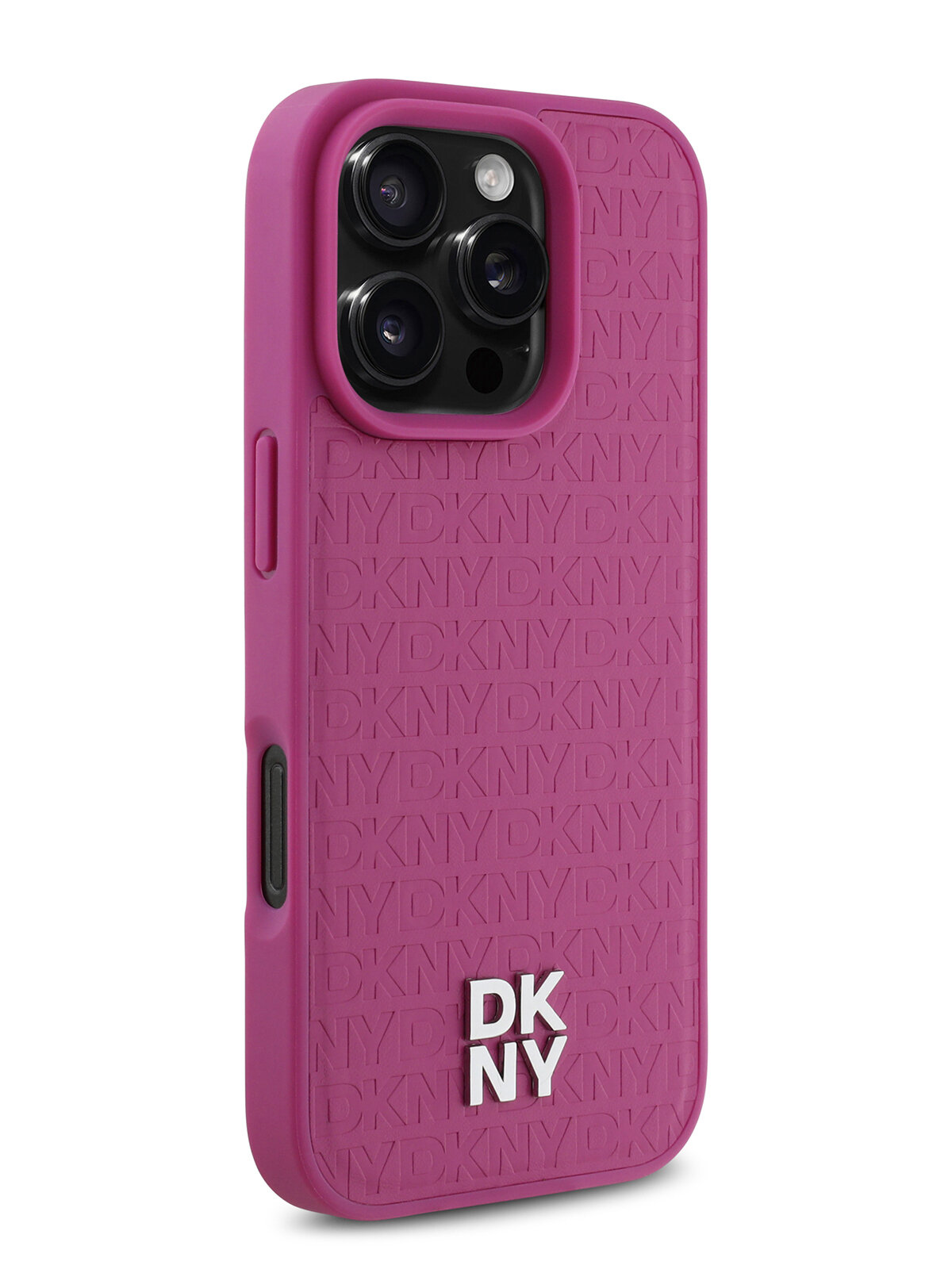 Купить DKNY для iPhone 16 Pro Max чехол PU Repeat Stack metal logo Hard Pink (MagSafe) с доставкой по всей России.