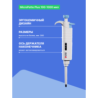Механический одноканальный дозатор DLAB MicroPette Plus 100-1000 мкл переменного объема, изготовлен из износостойкого пластика, устойчивого к воздействию химических веществ.