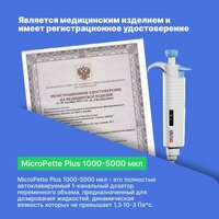Купить DLAB MicroPette Plus 1000-5000 мкл Дозатор переменного объема 1-канальный с поверкой с доставкой по всей России.