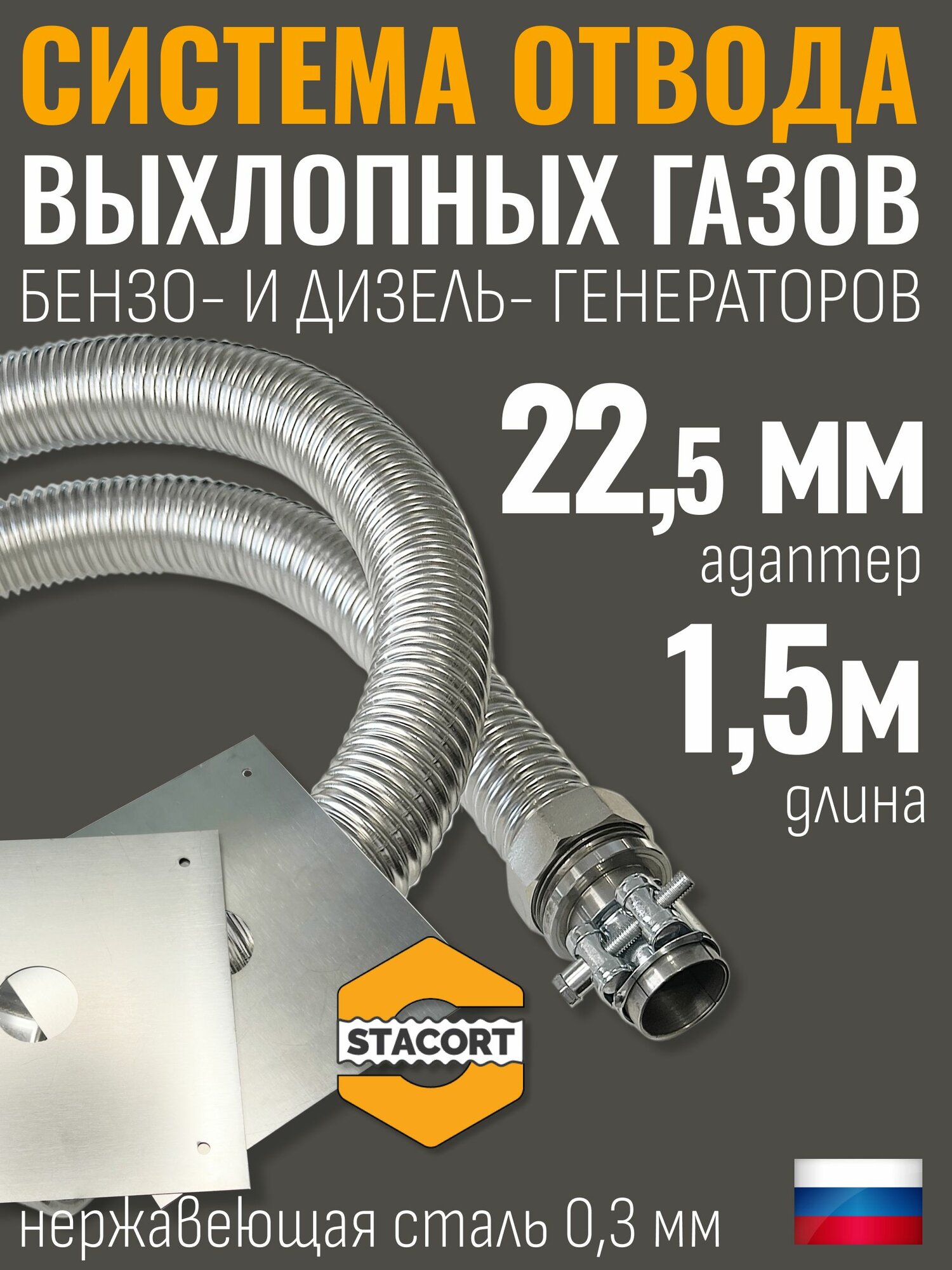 Система отвода выхлопных газов STACORT предназначена для удаления продуктов сгорания топлива, которые образуются при работе переносных дизельных или бензиновых электрогенераторов.