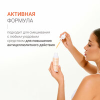 Активный комплекс антицеллюлитных компонентов способствует расщеплению жировой клетчатки и устранению излишней жидкости. Концентрат подходит для смешивания с другими уходовыми средствами (кремом, скрабом или молочком) для увеличения их активной фазы.