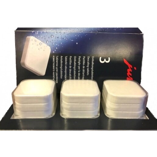 Таблетки для декальцинации JURA предназначены для полного удаления накипи или известкового налета в кофемашине. Таблетки разработаны специалистами JURA и произведены на основе сульфаминовой кислоты. Благодаря точно подобранному составу, таблетки JURA идеально промоют и очистят кофемашину, подходят для бережного и эффективного удаления накипи (декальцинации) во всех моделях кофемашин марки JURA. Не раз подтверждалось, чистки от накипи способствуют увеличению срока службы кофемашины. Таблетки для декальцинации можно применять и для удаления накипи во многих других водонагревательных устройствах, где образуются налет и накипь, например, электрочайниках, кипятильниках, бойлерах, и других устройств.