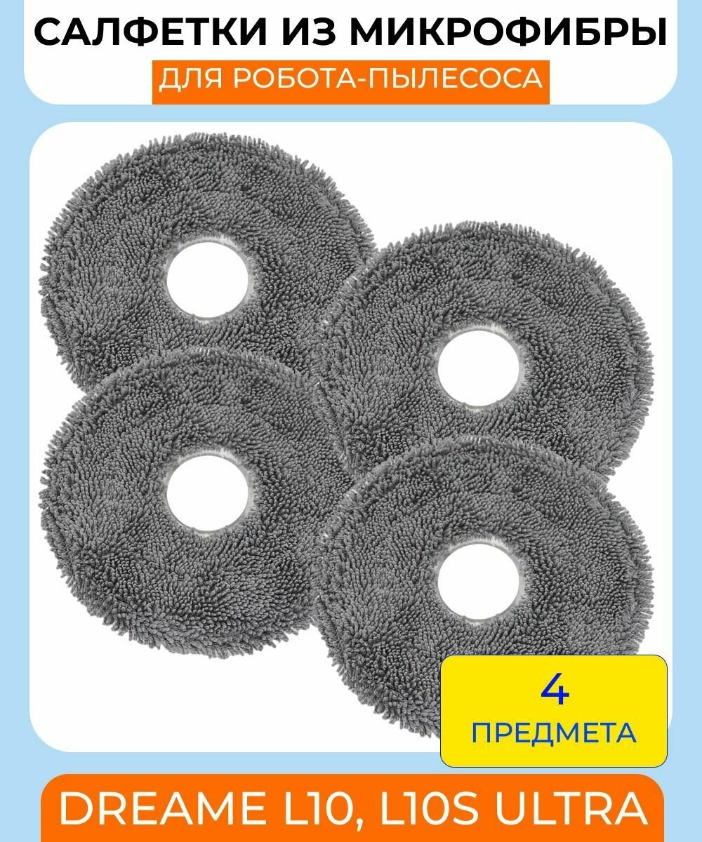 Для робота-пылесоса Dreame Bot L10S, L10S Ultra, S10, S10 Pro: Тряпки из микрофибры 4шт: сравнение цен, характеристики, фото, актуальное наличие и цены.
