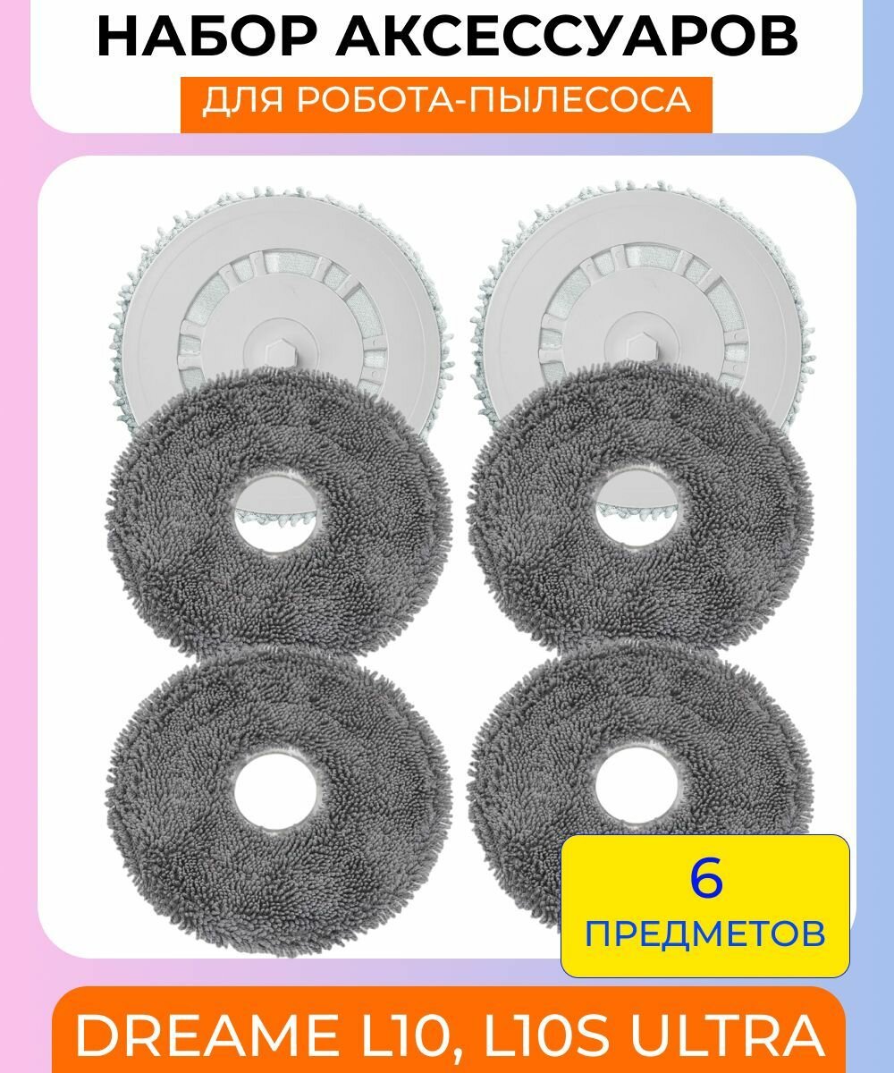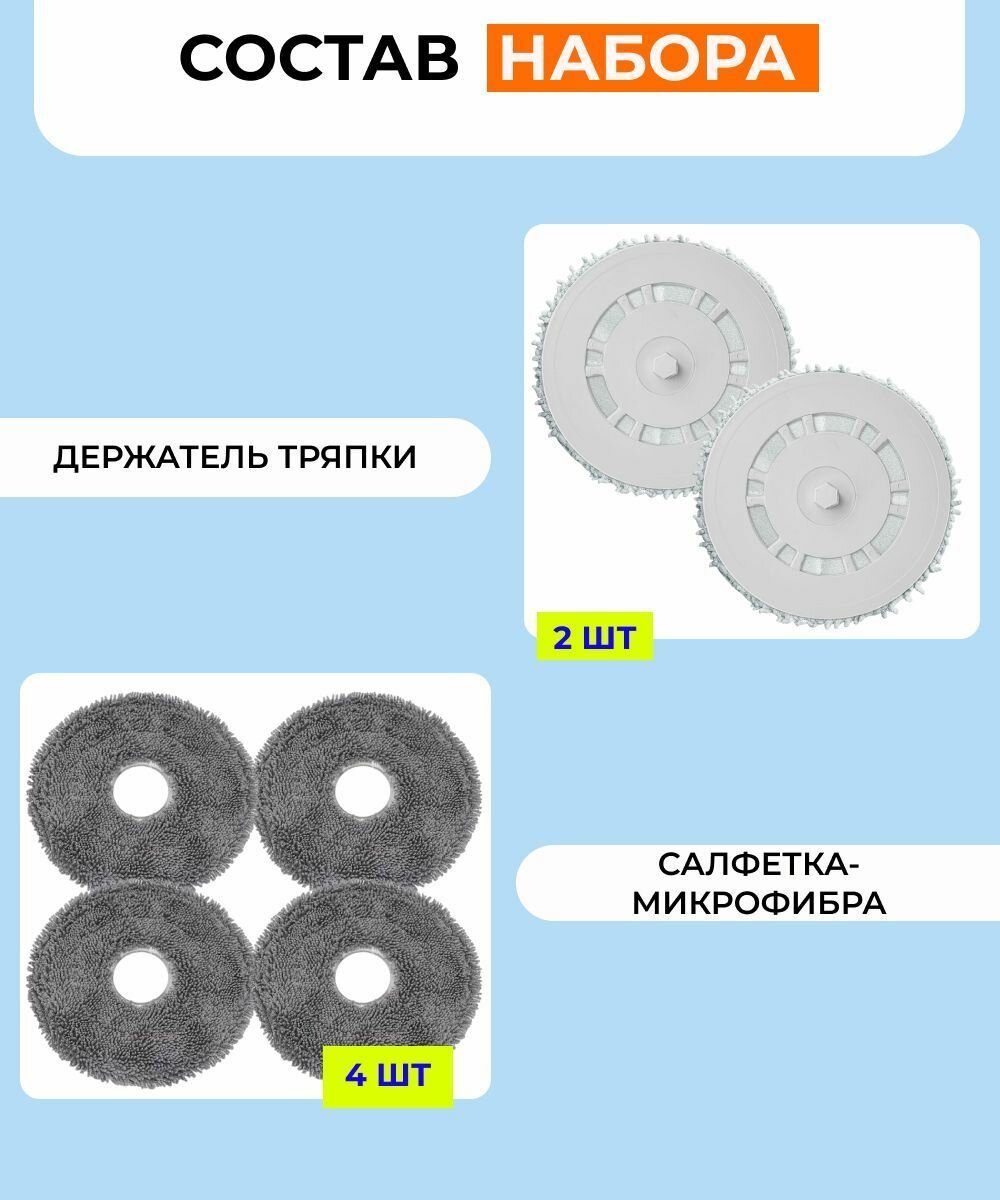 Для робота-пылесоса Xiaomi, Dreame L10, L10S Ultra : Тряпки из микрофибры 4 шт. и 2 держателя для тряпки