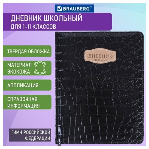 Дневник школьный универсальный Brauberg «Crocodile», черный, 48 листов, кожзам, 2шт. (105481): сравнение цен, характеристики, фото, актуальное наличие и цены.