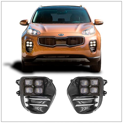 Дхо ходовые огни Kia Sportage 4 (IV) Рестайлинг 2018-2021г Сделают автомобиль более заметным и безопасным на дороге. Устанавливаются в штатное место для противотуманных ламп. Подключаются также штатно. Очень яркие за счет светодиодных элементов.