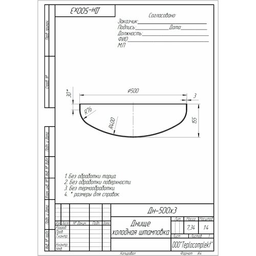 Купить Днище эллиптическое 500х3 AISI 321 Теплокомплект, диаметром 500 мм, толщиной 3 мм, из нержавеющей стали AISI 321 с доставкой по всей России.