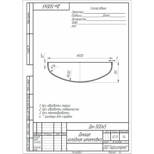 Купить Днище эллиптическое 500х5 AISI 321 Теплокомплект, диаметром 500 мм, толщиной 5 мм, из нержавеющей стали AISI 321 с доставкой по всей России.