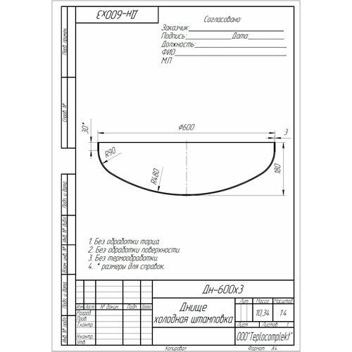 Купить Днище эллиптическое 600х3 AISI 321 Теплокомплект, диаметром 600 мм, толщиной 3 мм, из нержавеющей стали AISI 321 с доставкой по всей России.
