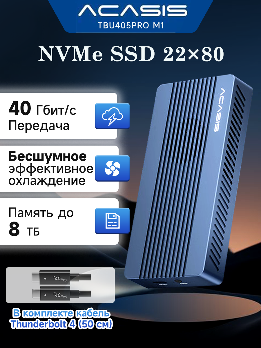 До 8 ТБ ACASIS TBU405pro USB4/Thunderbolt4 40 Гбит/с M.2 NVMe 2280КорпусдляSSDнакопителя: сравнение цен, характеристики, фото, актуальное наличие и цены.