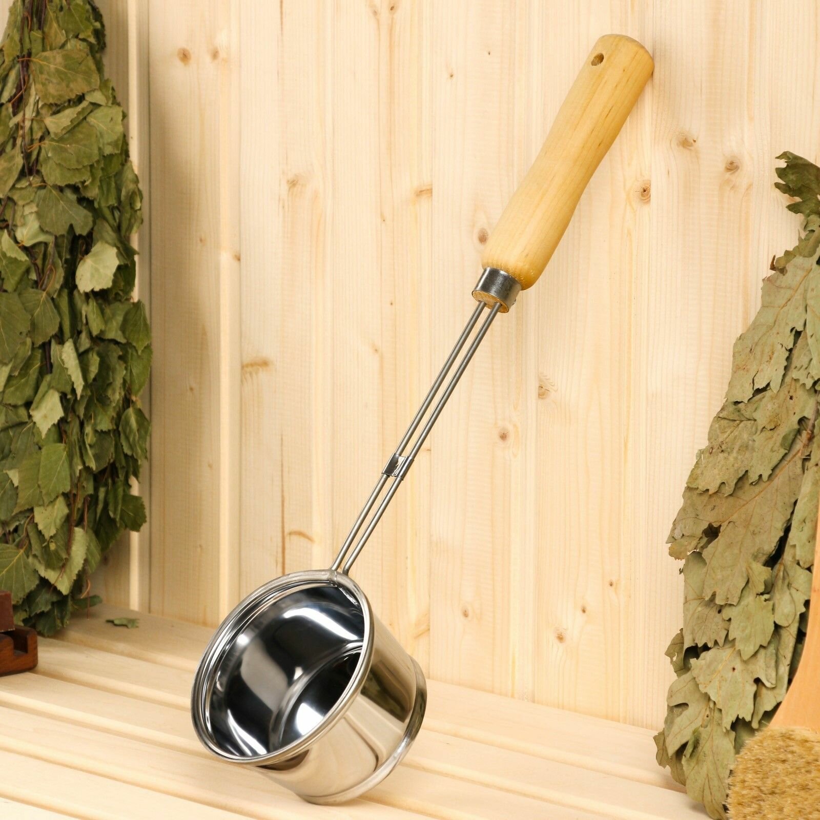 Ковш-черпак для бани из нержавеющей стали, 0.4л, 46 см, с деревянной ручкой: сравнение цен, характеристики, фото, актуальное наличие и цены.