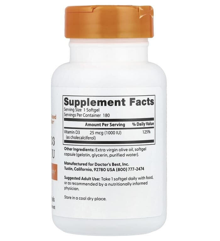 Купить Doctor’s Best Vitamin D-3, Витамин D-3 25 мкг (1000 МЕ) 180 гел. капсул с доставкой по всей России. Doctor’s Best Vitamin D-3, Витамин D-3 25 мкг (1000 МЕ) 180 гел. капсул: сравнение цен, характеристики, фото, актуальное наличие и цены.