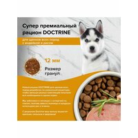 DOCTRINE. Сухой корм для собак – идеальный выбор для ваших щенков! Разработан специально для маленьких питомцев от 1 до 12 месяцев, он обеспечивает полноценное и сбалансированное питание. Уникальная формула подходит для всех пород, что делает его универсальным решением. Угнетая нагрузку на пищеварение, монопротеиновая основа станет единственным источником белка, безопасным даже для чувствительных малышей.