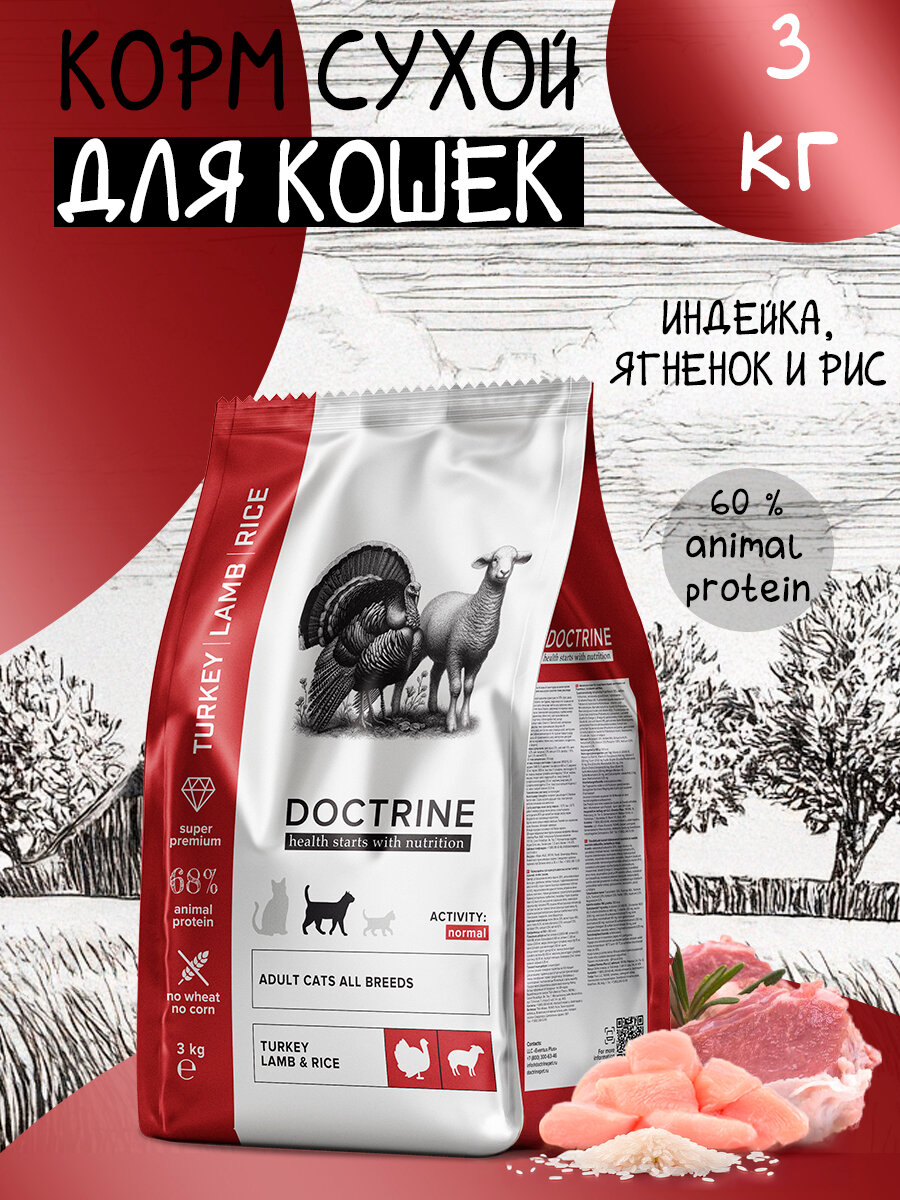 Купить DOCTRINE Корм для взрослых кошек индейка, ягненок и рис 3 кг с доставкой по всей России.