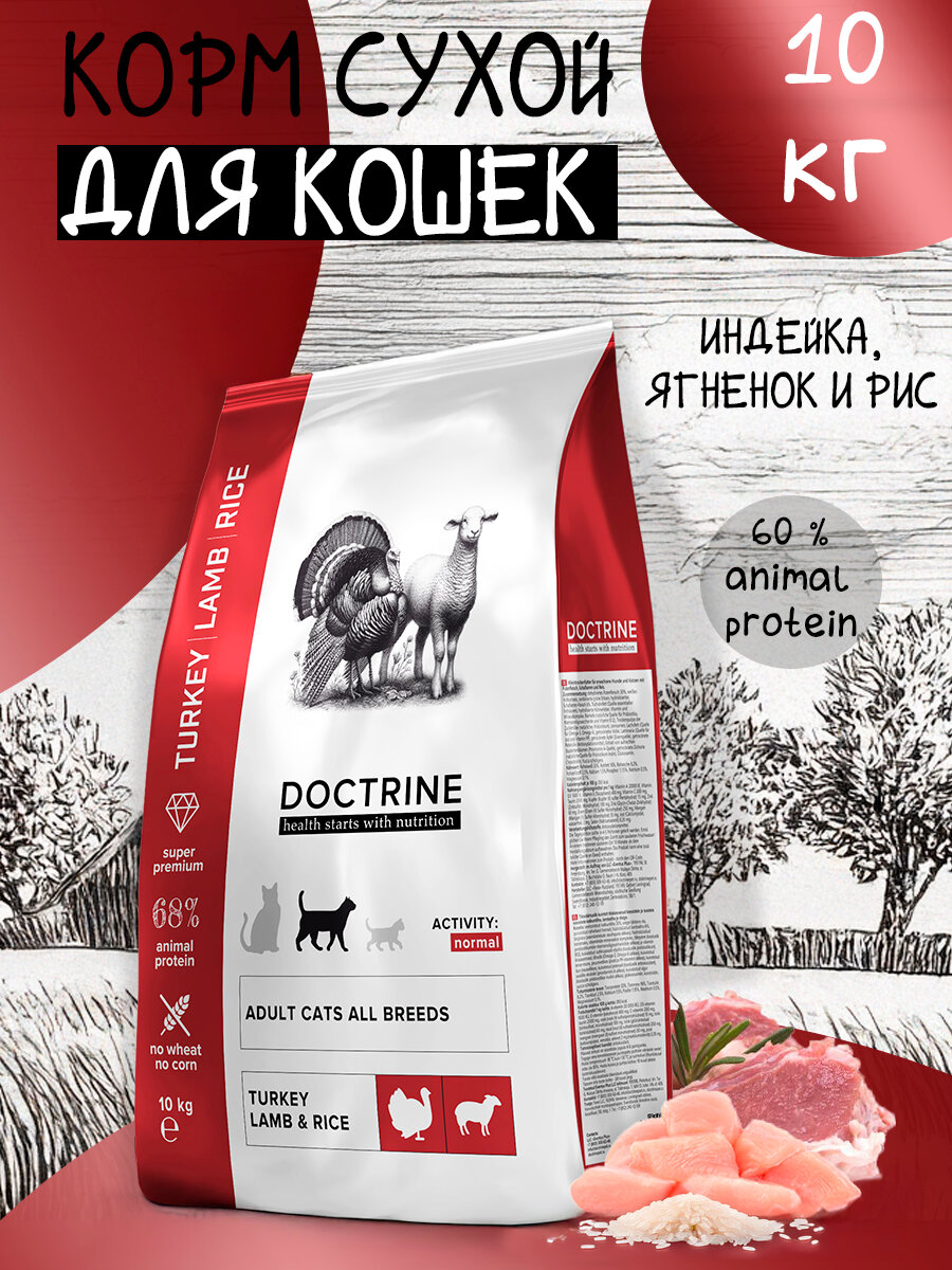 Купить DOCTRINE Сухой корм для кошек индейка ягненок и рис 10 кг с доставкой по всей России.