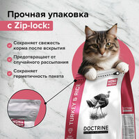 DOCTRINE. Сухой корм для кошек – это идеальный выбор для заботливых владельцев котиков. Он создан исключительно для малышей от одного до двенадцати месяцев, а также подходит беременным и кормящим кошкам. Ярко выраженный вкус индейки радует питомцев, а содержание белка и жира способствует гармоничному развитию. Этот корм для котят содержит хлореллу, что укрепляет иммунитет. Индейка является единственным источником протеина, обеспечивая легкость усвоения.