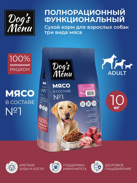 Купить Dog`s Menu Adult 10 кг полнорационный сухой корм для взрослых собак три вида мяса с доставкой по всей России. Dog`s Menu Adult 10 кг полнорационный сухой корм для взрослых собак три вида мяса: сравнение цен, характеристики, фото, актуальное наличие и цены.